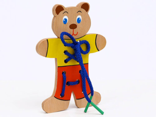 Hračka je vhodná k procvičování jemné motoriky a naučení vázání mašliček