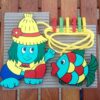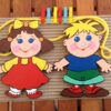 Po připevnění nástěnky na zeď si děti kolíčkama přidělávají a vystavují své namalované obrázky.