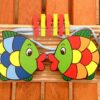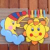 Po připevnění nástěnky na zeď si děti kolíčkama přidělávají a vystavují své namalované obrázky.